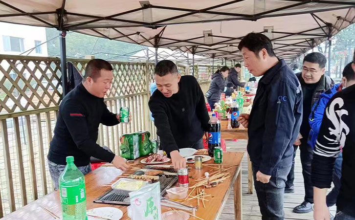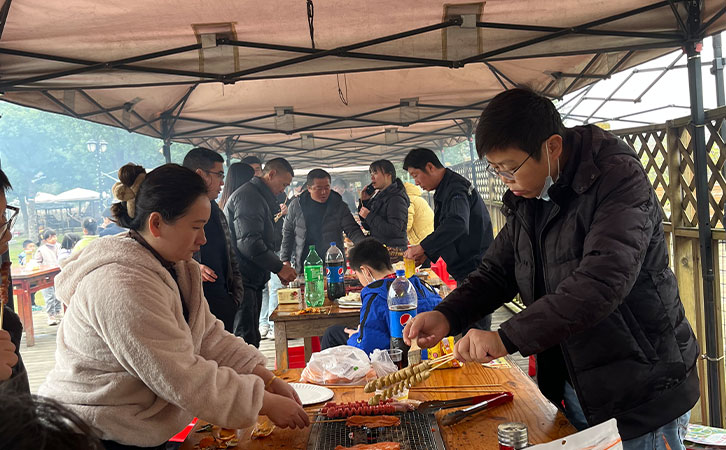 游玩過后,饑腸轆轆的人們開始燒烤,各組人員分工明確、團結協作,你生火我備料,圍坐在一起共同分享自己制作的美食,觥籌交錯間,匯聚著朝夕相處的同事們濃濃的友情和幸福。
