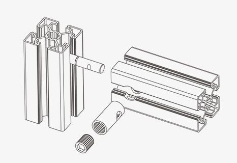 用于兩根鋁型材90度的直角連接。安裝時,它隱藏在型材內部,請根據實物加工孔位。