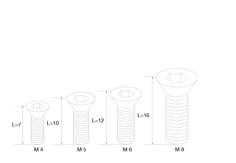 與 T 型螺母配合,常用于合頁、門吸、手柄等裝飾件與型材的連接。
