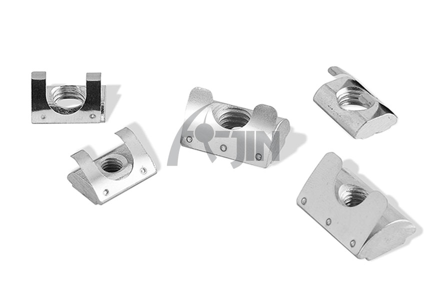 彈片螺母塊能被直接塞進(jìn)鋁型材槽坑中的任意裝配點(diǎn),他背部的彈片能撐起并固定它的位置,使安裝十分簡單且可靠,它是型材連接中使用較多的配件之一。