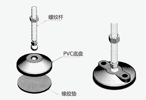 蹄腳是各種工業鋁型材支架及設備通用的配件,具有支撐、防震等作用,螺桿可調節高度。
