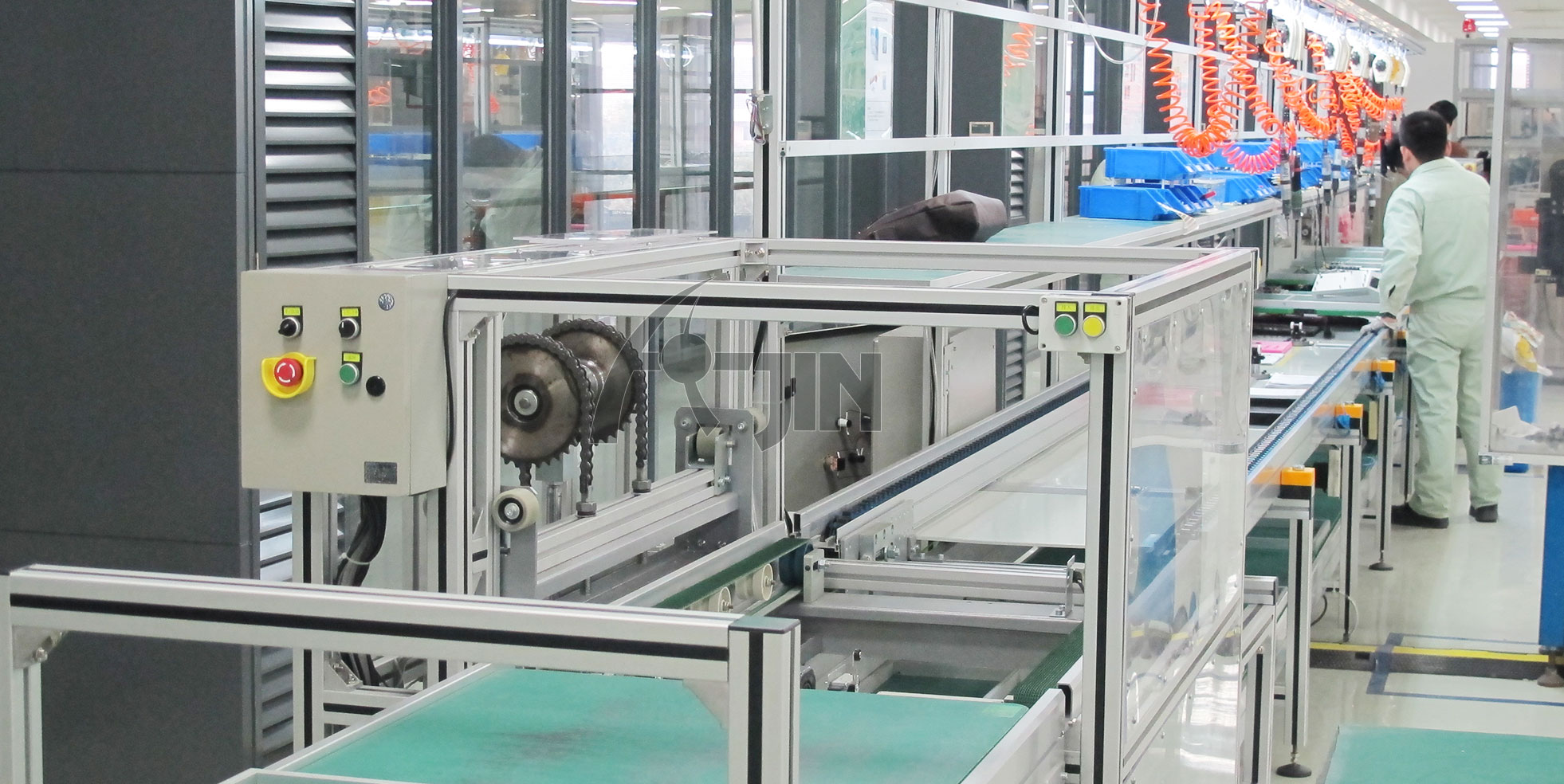 生產流水線是在一定的線路上連續輸送貨物搬運機械,又稱輸送線或者輸送機。按照輸送系列產品大體可以分為:皮帶流水線、板鏈線、倍數鏈線、插件線、網帶線、懸掛線及滾筒流水線這七類流水線。一般包括牽引件、承載構件、驅動裝置、張緊裝置、改向裝置和支承件等。流水線輸送能力大,運距長,還可在輸送過程中同時完成若干工藝操作,所以應用十分廣泛,使用我公司生產的各種生產流水線可以為客戶大幅節約人工、提升效率!